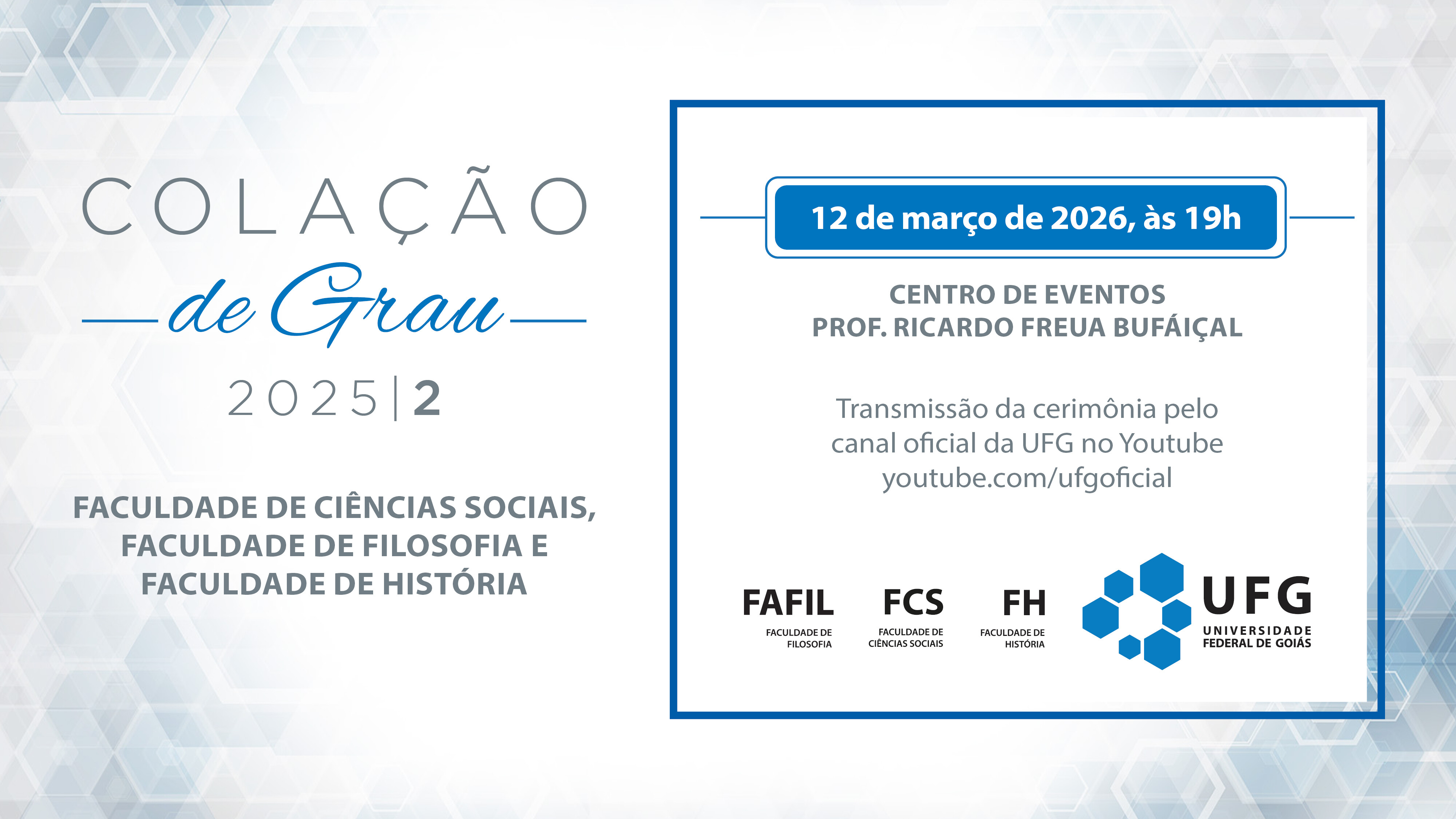 Colação ocorre em 12 de março de 2026, às 19hs